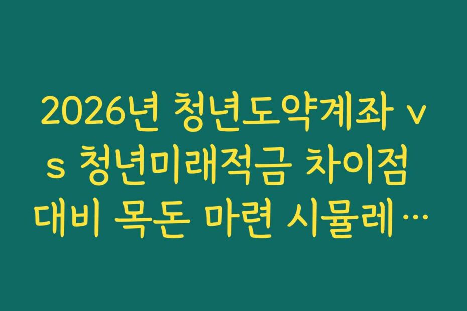 2026년 청년도약계좌 vs 청년미래적금 차이점 대비 목돈 마련 시뮬레이션 확인, 도대체 어디서부터 확인해야 할지 막막하시죠. 2026년 청년도약계좌와 청년미래적금은 청년층을 위한 금융상품으로 많은 관심을 받고 있어요.