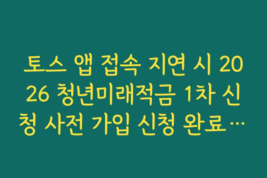 2026년 토스 앱 접속 지연 시 2026 청년미래적금 1차 신청 사전 가입 신청 완료 우회 팁, 도대체 어디서부터 확인해야 할지 막막하시죠. 요즘 많은 분들이 2026 청년미래적금 1차 신청을 위해 토스 앱을 이용하고 있어요.