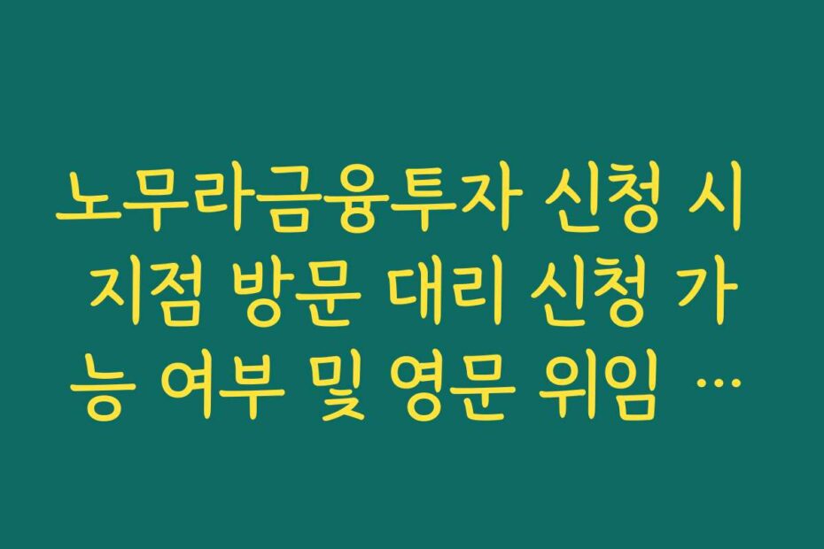 노무라금융투자 신청 시 지점 방문 대리 신청 가능 여부 및 영문 위임 서류와 관련하여 가장 자연스러운 질문형 또는 인사이트형 제목 노무라금융투자 신청 시 지점 방문 대리 신청 가능 여부 및 영문 위임 서류에 대한 질문이 많아지고 있어요.