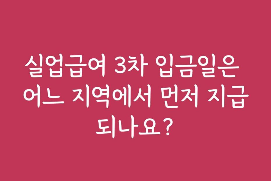 실업급여 3차 입금일은 어느 지역에서 먼저 지급되나요. 2026년 최신 정보를 통해, 각 지역별 지급 일정과 관련된 유용한 팁을 안내해 드릴게요. 이 글 하나면 실업급여에 대한 궁금증이 해결될 것입니다.