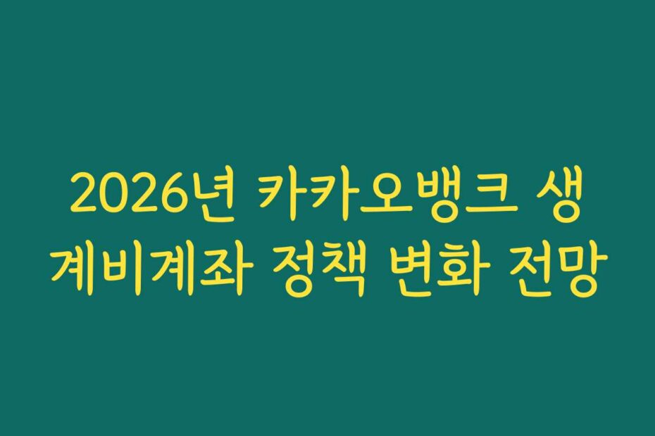 2026년 카카오뱅크 생계비계좌 정책 변화 전망에 대한 최신 정보는 생계비 지원의 중요성이 갈수록 커지는 상황에서 많은 이들의 관심을 끌고 있습니다. 정책 변화에 따른 혜택과 주의사항을 명확히 이해하는 것이 중요하죠.