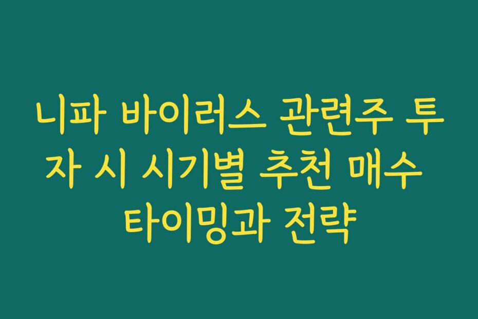 니파 바이러스 관련주 투자 시 시기별 추천 매수 타이밍과 전략에 대해 2026년 최신 정보를 바탕으로 확실한 가이드를 제공합니다. 이 글을 통해 투자 결정을 내릴 수 있도록 돕겠습니다. 니파 바이러스 관련 투자에 대한 모든 궁금증을 해소해 드릴게요.