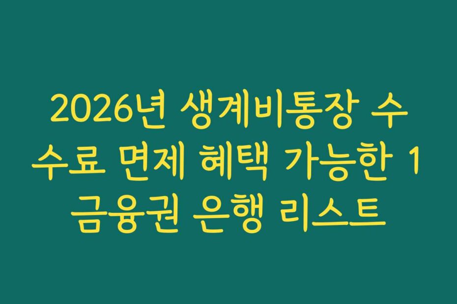 2026년 생계비통장 수수료 면제 혜택 가능한 1금융권 은행 리스트를 확인하려면 여기서 시작하세요. 이 글을 통해 최신 정보를 쉽게 이해하고 필요한 혜택을 놓치지 않도록 하겠습니다.
