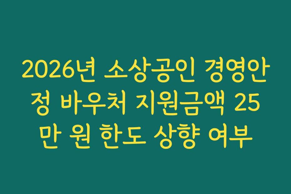 2026년 소상공인 경영안정 바우처 지원금액 25만 원 한도 상향 여부에 대한 정보는 소상공인들의 생존과 직결되는 중요한 사안입니다. 최신 정보에 따르면 이 지원금의 상향 여부가 논의되고 있어, 소상공인들은 큰 관심을 가지고 있습니다.