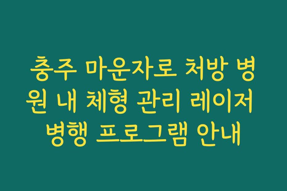 충주 마운자로 처방 병원 내 체형 관리 레이저 병행 프로그램 안내에 대한 궁금증이 많으시죠. 2026년 최신 정보를 통해 체형 관리에 필요한 모든 내용을 자세히 설명드릴게요. 이 글을 통해 필요한 정보가 한눈에 들어오실 겁니다.