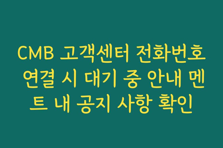 2026년 CMB 고객센터 전화번호 연결 시 대기 중 안내 멘트 내 공지 사항 확인에 대한 정보는 언제나 중요하죠. 특히 대기 중에 어떤 안내가 있는지 알면 더 효율적으로 문제를 해결할 수 있거든요.