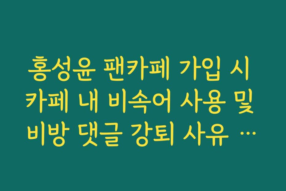 홍성윤 팬카페 가입 시 카페 내 비속어 사용 및 비방 댓글 강퇴 사유 가이드가 유독 화제인 이유, 핵심만 짚어봅니다 팬카페는 단순한 소통 공간을 넘어, 그 운영 원칙과 규칙을 이해하는 것이 정말 중요하죠.