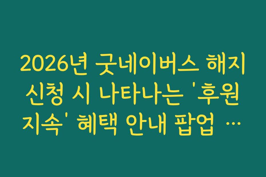 2026년 굿네이버스 해지 신청 시 나타나는 ‘후원 지속’ 혜택 안내 팝업 대응 팁, 도대체 어디서부터 확인해야 할지 막막하시죠. 굿네이버스의 후원 해지 신청 시 나타나는 팝업이 많은 이들에게 혼란을 주고 있습니다.