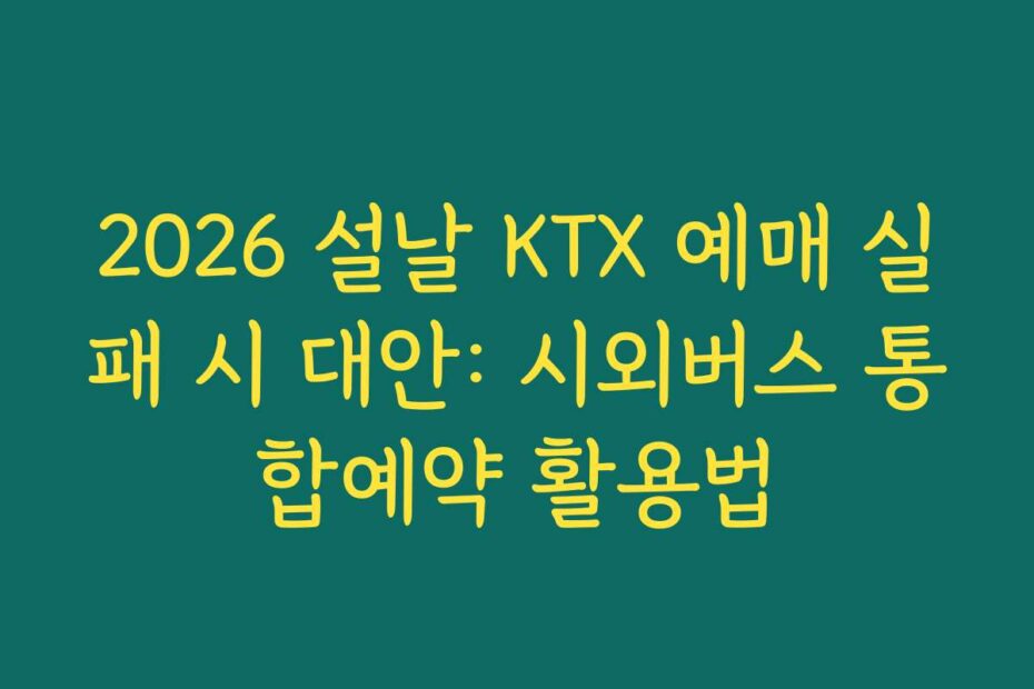 2026 설날 KTX 예매 실패 시 대안: 시외버스 통합예약 활용법을 알아보세요. 예매가 어려운 상황에서도 시외버스를 통해 편리하게 이동할 수 있는 방법을 소개합니다. 2026년 최신 정보로 준비된 이 글을 통해 예매 실패 걱정을 덜어보세요.
