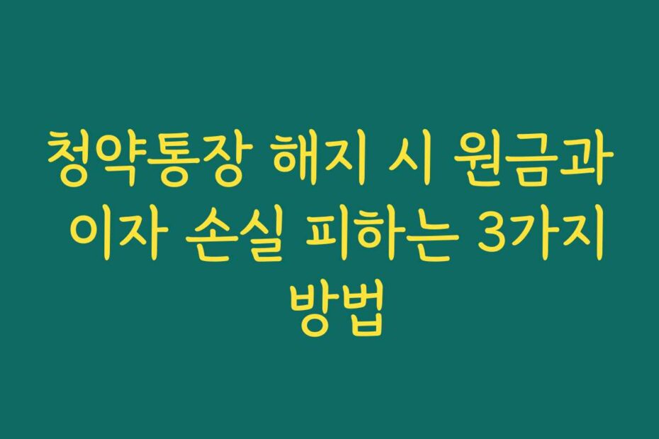 청약통장 해지 시 원금과 이자 손실 피하는 3가지 방법을 알아보세요. 2026년 최신 정보와 함께, 효과적으로 자산을 지키는 방법을 소개합니다. 이 글을 통해 손실 없는 해지 전략을 마련할 수 있을 거예요.