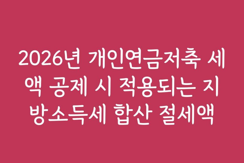 2026년 개인연금저축 세액 공제 시 적용되는 지방소득세 합산 절세액에 대한 정보는 매우 중요합니다. 정확한 세액 공제를 통해 효과적으로 세금을 절감할 수 있는 기회를 놓치지 마세요. 최신 정보로 준비하세요.