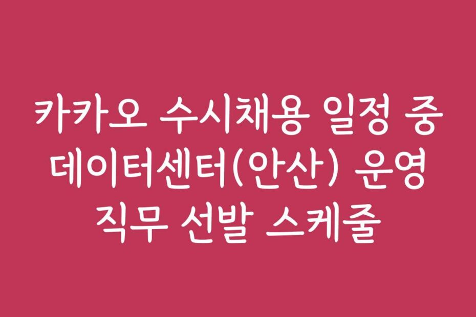 카카오 수시채용 일정 중 데이터센터(안산) 운영 직무 선발 스케줄 신청 자격과 2026년 변경된 소득 기준, 한눈에 정리해 드립니다 2026년 카카오의 수시채용 일정 중 데이터센터(안산) 운영 직무에 대한 정보는 많은 분들이 기다리고 있는 부분이죠.