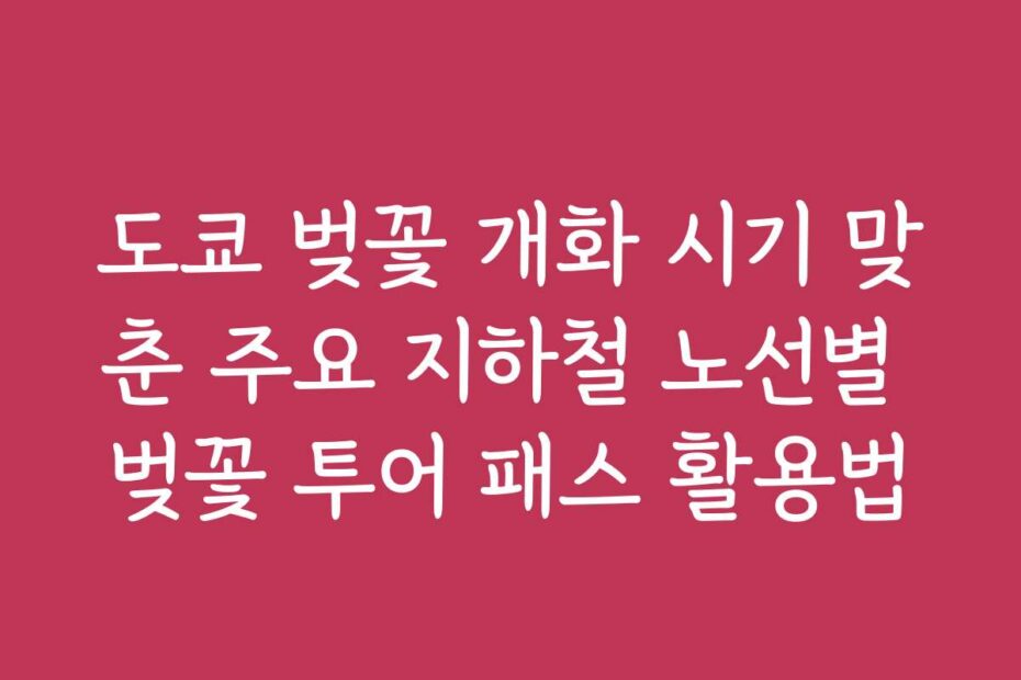2026년 도쿄 벚꽃 개화 시기를 맞춘 주요 지하철 노선별 벚꽃 투어 패스 활용법에 대한 모든 정보를 여기서 확인해 보세요. 이 글을 통해 도쿄의 벚꽃을 만끽할 준비를 확실히 해드릴게요. 놓치면 후회할 유용한 팁과 정보를 담았습니다.