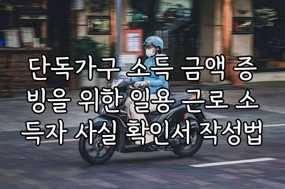단독가구 소득 금액 증빙을 위한 일용 근로 소득자 사실 확인서 작성법 단독가구 소득 금액 증빙을 위한 일용 근로 소득자 사실 확인서 작성법에 대해 알아보겠습니다. 이 글을 통해 필요한 서류와 작성 방법을 쉽게 이해할 수 있습니다.
