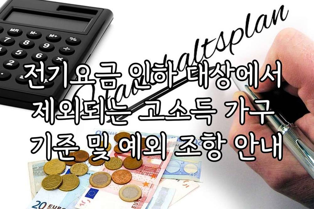 전기요금 인하 대상에서 제외되는 고소득 가구 기준 및 예외 조항 안내 전기요금 인하 대상에서 제외되는 고소득 가구 기준 및 예외 조항에 대한 정보는 이번 기회에 반드시 확인하시길 바랍니다. 2026년 기준으로 정확하게 안내해 드릴게요.