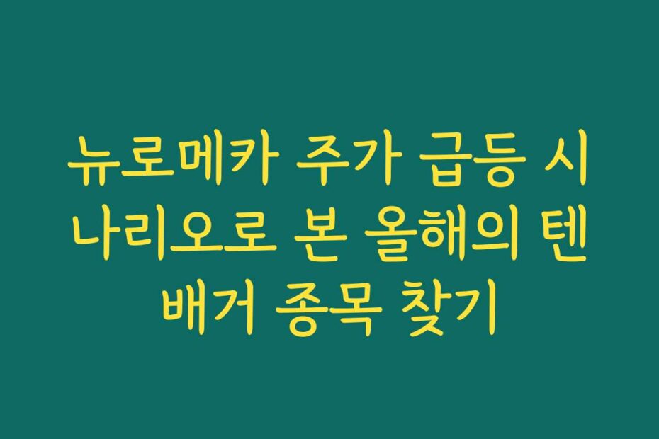 혹시 이런 고민 있으신가요. 2026년 최신 정보로 뉴로메카 주가 급등 시나리오로 본 올해의 텐배거 종목 찾기를 통해 여러분의 투자 고민을 해결해 드립니다. 주식 투자에 대한 불안감과 궁금증을 해소할 수 있는 기회를 제공하겠습니다.