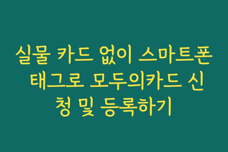 혹시 이런 고민 있으신가요. 실물 카드 없이 스마트폰 태그로 모두의카드 신청 및 등록하기 방법을 찾고 계신가요. 2026년 최신 정보로, 보다 간편하고 빠르게 카드 신청을 진행할 수 있는 방법을 안내해 드립니다.