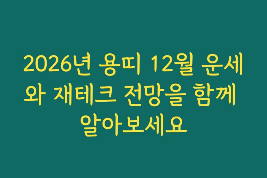 혹시 이런 고민 있으신가요. 2026년 용띠 12월 운세와 재테크 전망을 함께 알아보세요. 2026년 최신 정보로 당신의 재정 계획을 세우는 데 도움이 될 내용이 가득합니다.
