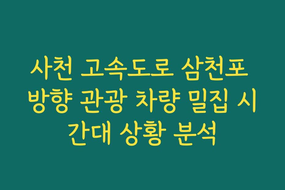 사천 고속도로 삼천포 방향으로 관광 차량이 밀집하는 시간대에 대한 분석을 통해, 많은 분들이 겪는 불편함을 이해하고 해결책을 제시하고자 합니다. 이 글을 통해 2026년 최신 정보를 바탕으로 보다 나은 여행 계획을 세울 수 있을 것입니다.