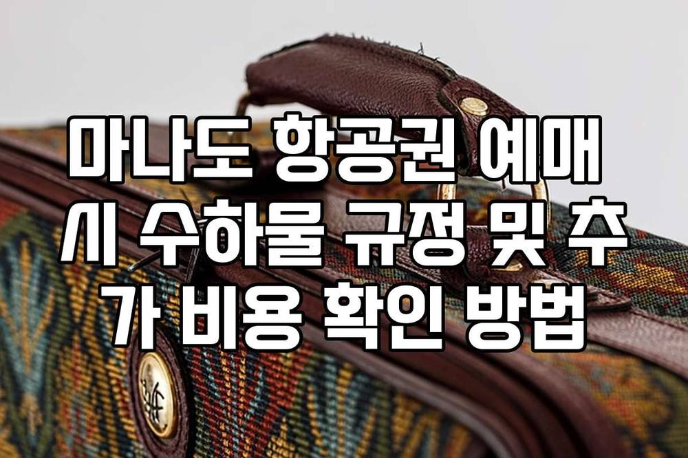 마나도 항공권 예매 시 수하물 규정 및 추가 비용 확인 방법에 대한 올바른 정보가 필요하다면 이 글을 참고해 보세요. 2026년 기준으로 수하물 규정과 추가 비용을 다루어, 여러분의 여행 준비에 실질적인 도움을 줄 것입니다.