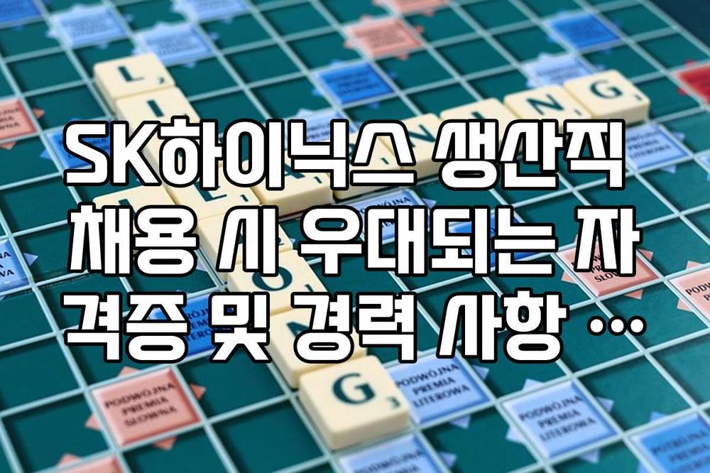 SK하이닉스 생산직 채용 시 우대되는 자격증 및 경력 사항 정리, 어떻게 준비할까. 2026년 SK하이닉스의 생산직 채용은 경쟁이 치열해질 것으로 예상됩니다. 이 글에서는 우대되는 자격증과 경력 사항을 자세히 정리해 드립니다.