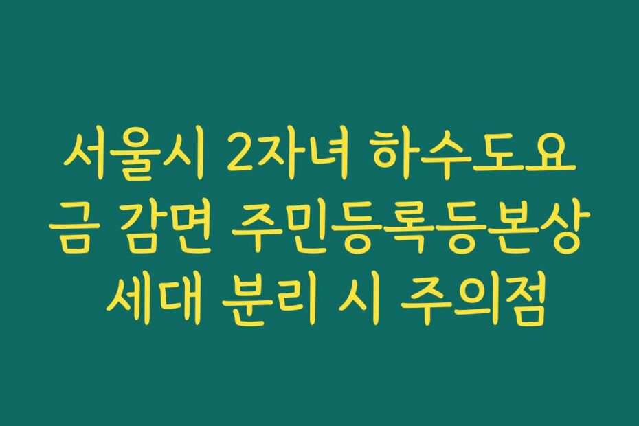 서울시 2자녀 하수도요금 감면 주민등록등본상 세대 분리 시 주의점에 대해 알아보세요. 감면 혜택을 받기 위해서는 세대 분리 과정에서 주의할 사항이 많습니다. 2026년 최신 정보로 혼란을 최소화하고, 권리를 최대한 활용하는 방법을 제시합니다.