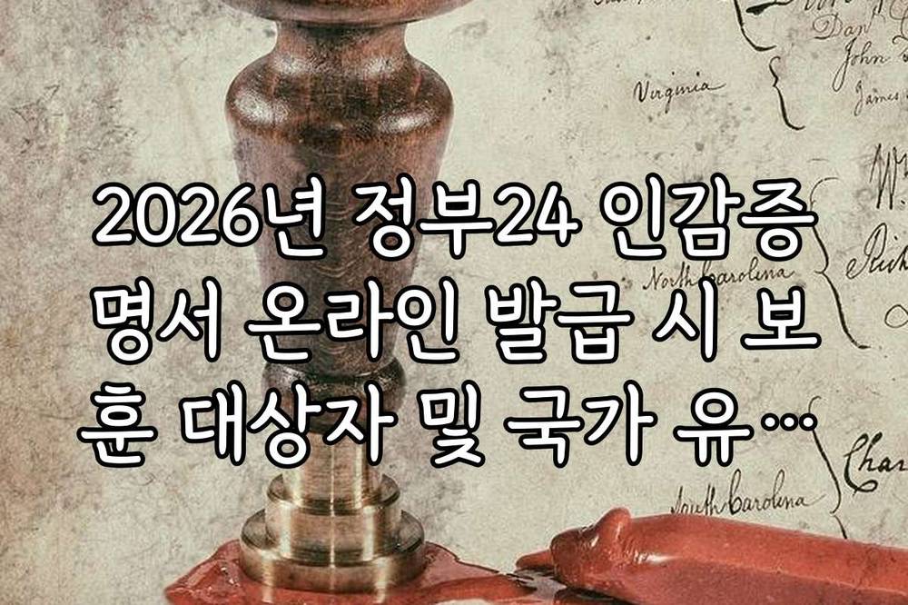 2026년 정부24 인감증명서 온라인 발급 시 보훈 대상자 및 국가 유공자 용도 확인 2026년 정부24 인감증명서 온라인 발급 시 보훈 대상자 및 국가 유공자 용도 확인의 모든 정보를 알아보세요. 정확한 발급 방법과 필요 자료를 정리했습니다.