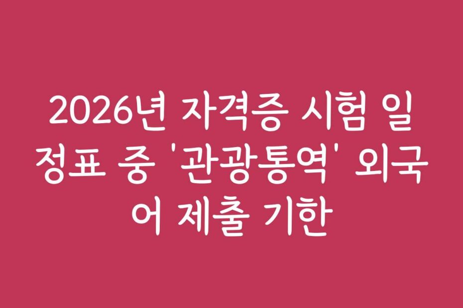 2026년 자격증 시험 일정표 중 ‘관광통역’ 외국어 제출 기한에 대한 최신 정보를 정리했습니다. 해당 기한을 놓치면 큰 손해를 볼 수 있으니, 중요한 포인트를 한눈에 확인하세요. 2026년 기준으로, 필요한 모든 정보가 여기에 담겨 있습니다.