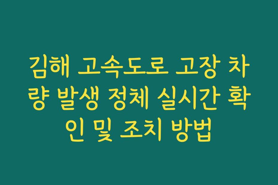 고속도로에서 차량 고장으로 인한 정체는 정말 스트레스 받는 경험이죠. 특히 김해 고속도로에서 발생하는 고장 차량으로 인해 교통이 혼잡해질 경우, 어떻게 대처해야 할지 막막할 수 있습니다.