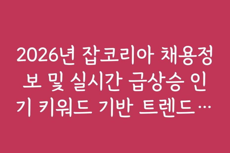 2026년 잡코리아 채용정보 및 실시간 급상승 인기 키워드 기반 트렌드 분석을 통해 최신 정보와 유망 직종을 알아보세요. 이 글을 통해 유용한 인사이트를 얻고, 여러분의 취업 전략을 세우는 데 도움을 드리겠습니다.