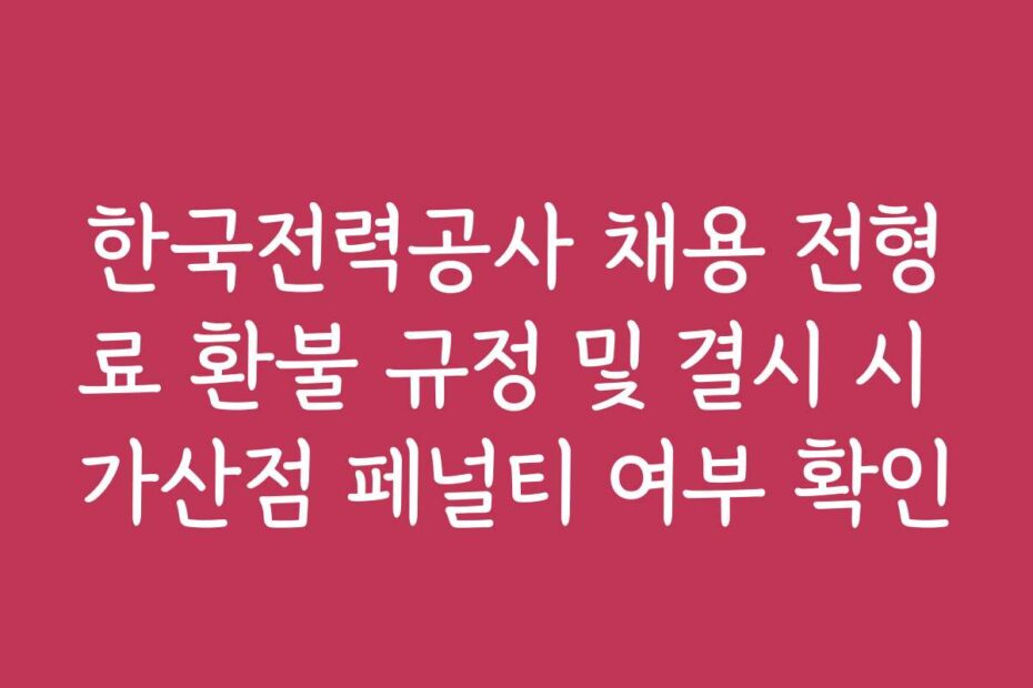 한국전력공사 채용 전형료 환불 규정 및 결시 시 가산점 페널티 여부 확인 신청 자격과 2026년 변경된 소득 기준, 한눈에 정리해 드립니다 한국전력공사 채용 전형료 환불 규정과 결시 시 가산점 페널티에 대해 궁금하신가요.