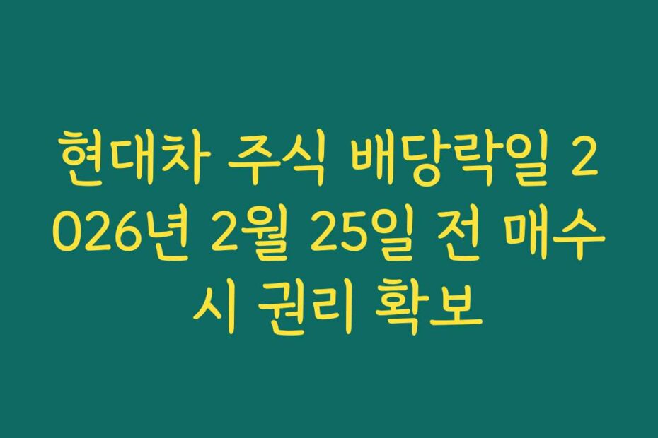 현대차 주식 배당락일 2026년 2월 25일 전 매수 시 권리 확보에 대한 정확한 정보는 투자자들에게 필수적입니다. 이 글을 통해 당신의 궁금증을 해결하고, 배당락일 전에 매수하여 권리를 확보하는 방법을 소개할게요.