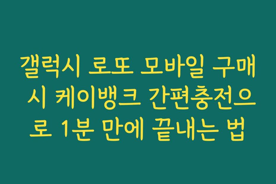 갤럭시 로또 모바일 구매 시 케이뱅크 간편충전으로 1분 만에 끝내는 법을 찾고 계신가요. 2026년 최신 정보로, 빠르고 간편하게 로또를 구매하고 싶은 분들을 위해 필요한 모든 정보를 담았습니다. 이 글 하나면 여러분의 고민이 해결될 거예요.