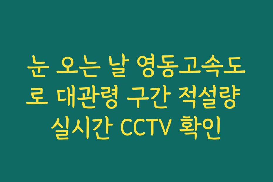 눈 오는 날 영동고속도로 대관령 구간 적설량 실시간 CCTV 확인은 겨울철 안전한 운전을 위한 필수 요소입니다. 특히, 2026년 최신 정보에 따르면 이 구간의 적설량은 교통사고와 밀접한 관련이 있으니, 주의 깊게 확인해야 해요.