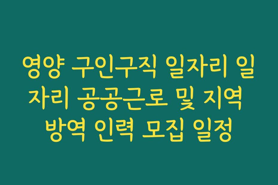 2026년 최신 정보, 영양 구인구직 일자리 일자리 공공근로 및 지역 방역 인력 모집 일정에 대한 명확한 가이드를 제공합니다. 많은 분들이 일자리 구하기에 어려움을 겪고 있죠. 이 글 하나로 여러분의 고민을 해결해 드릴게요.