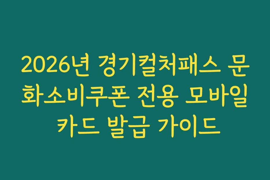 2026년 경기컬처패스 문화소비쿠폰 전용 모바일 카드 발급 가이드를 통해 복잡한 절차를 간단하게 해결하세요. 최신 정보로, 여러분이 놓치고 있는 중요한 팁들을 담았습니다. 이 글 하나로 모든 궁금증이 해소될 것입니다.