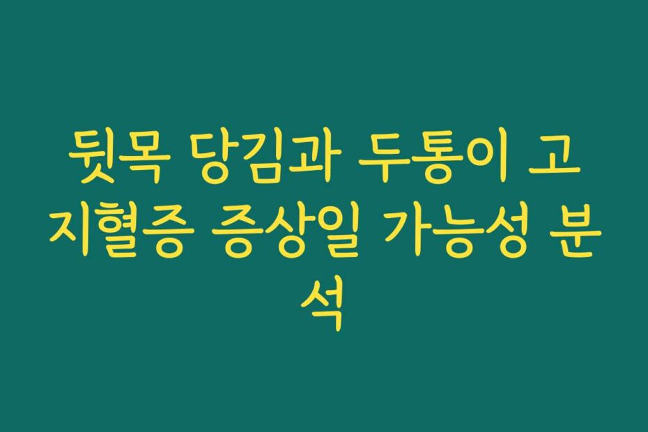 뒷목 당김과 두통, 이 두 증상이 고지혈증의 신호일 수 있다는 사실 알고 계신가요. 2026년 최신 정보에 따르면, 이 증상들이 단순한 피로에서 오는 것만이 아니라, 심각한 건강 문제의 전조일 수 있어요.
