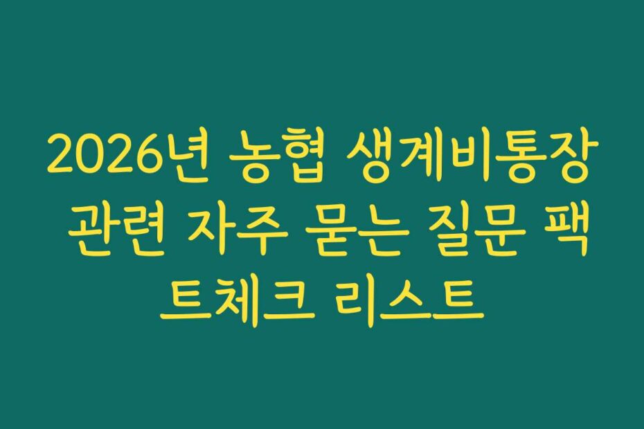 2026년 농협 생계비통장 관련 자주 묻는 질문에 대한 고민, 이제 끝내세요 2026년 농협 생계비통장에 관해 많은 분들이 궁금해하실 것들이 많죠. 특히, 통장 사용 방법, 신청 자격, 금리 등 다양한 정보들이 혼란스러울 수 있습니다.
