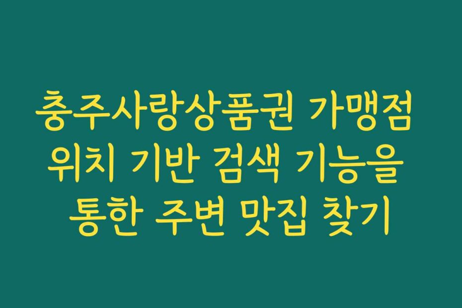 충주사랑상품권 가맹점 위치 기반 검색 기능을 통한 주변 맛집 찾기. 2026년 최신 정보로 다양한 맛집을 손쉽게 찾고 싶다면, 이 글을 통해 필요한 정보를 모두 얻을 수 있습니다.