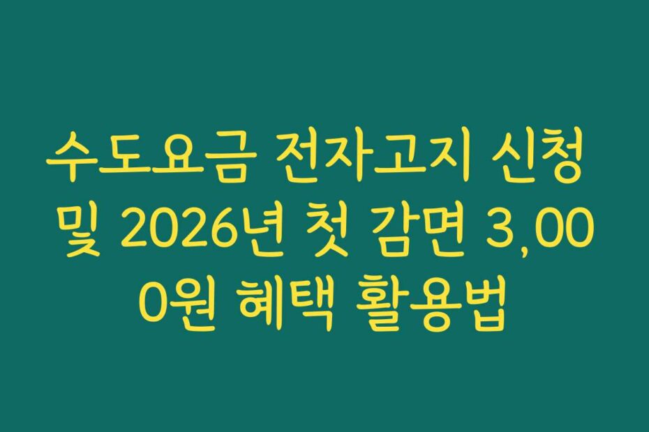 수도요금 전자고지 신청 및 2026년 첫 감면 3,000원 혜택 활용법에 대해 궁금하신가요. 📌 매달 고정적으로 나가는 수도요금을 줄이는 방법을 찾고 계신다면 이 글이 해결책이 될 거예요. 최신 정보와 함께 실질적인 팁을 제공하니 끝까지 읽어보세요.