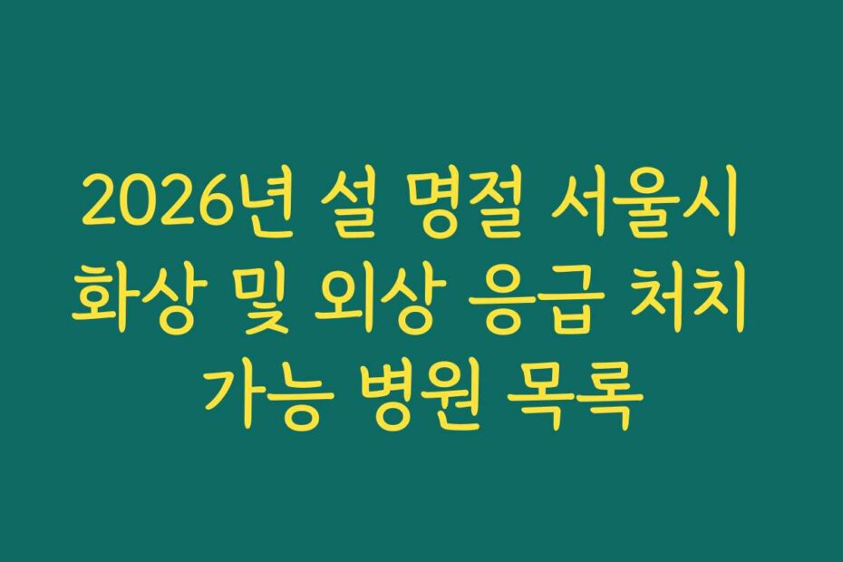 2026년 설 명절 서울시 화상 및 외상 응급 처치 가능 병원 목록을 통해, 긴급 상황에 대비할 수 있는 정보를 제공합니다. 불행한 사고는 언제든 발생할 수 있죠.