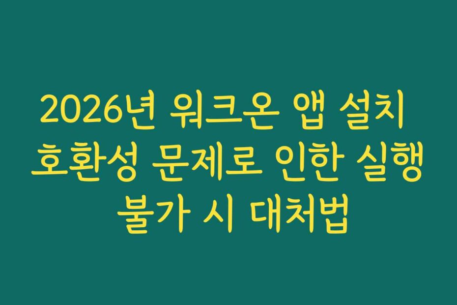 2026년 워크온 앱 설치 호환성 문제로 인한 실행 불가 시 대처법을 알아보세요. 많은 사용자들이 이 문제로 인해 큰 불편을 겪고 있는데요, 해결 방법을 통해 다시 원활한 사용을 할 수 있습니다.