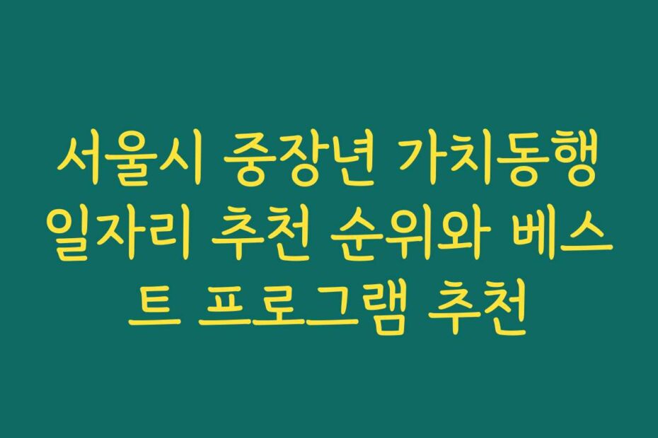 2026년 서울시 중장년 가치동행일자리 추천 순위와 베스트 프로그램 추천에 대한 정보, 어디서부터 시작해야 할지 막막하시죠. 이 글에서는 서울시의 다양한 중장년 일자리 프로그램을 정리해드릴게요.
