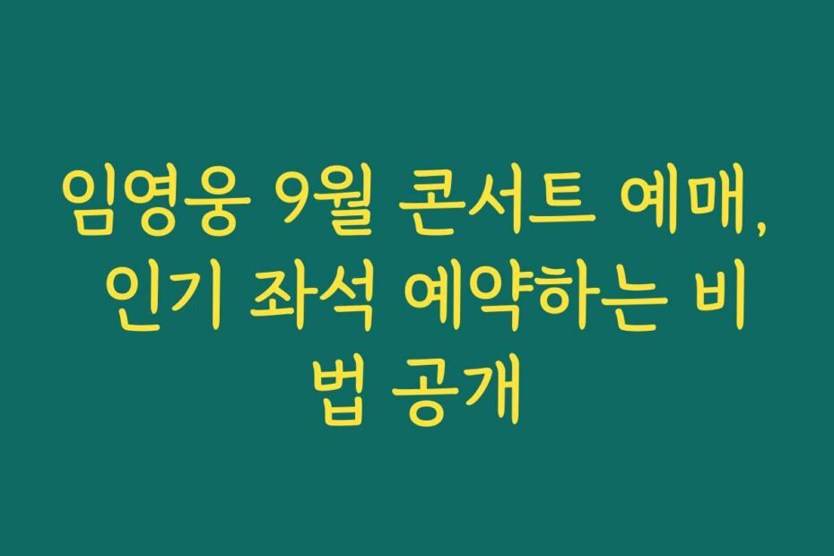 임영웅 9월 콘서트 예매, 인기 좌석 예약하는 비법 공개. 2026년 최신 정보를 통해 원하는 좌석을 확보하는 방법을 알아보세요. 누구나 쉽게 따라할 수 있는 팁과 실제 사례를 통해 성공적인 예매를 위한 초석을 다질 수 있습니다.