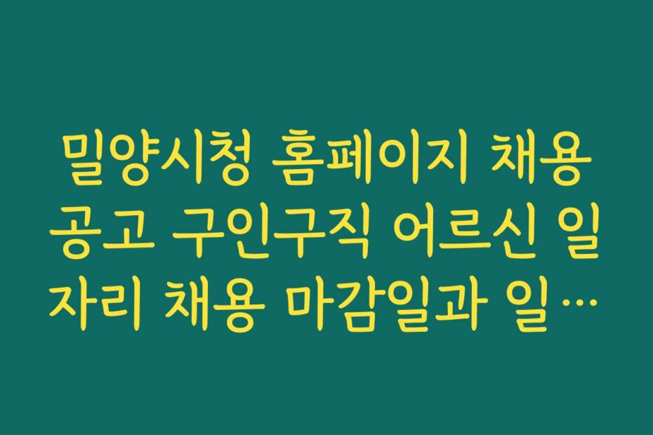 2026년 밀양시청 홈페이지 채용공고 구인구직 어르신 일자리 채용 마감일과 일정 체크하는 법을 알려드릴게요. 이 글 하나로 모든 정보를 한눈에 확인하고, 필요한 절차를 쉽게 따라할 수 있도록 도와드릴게요.