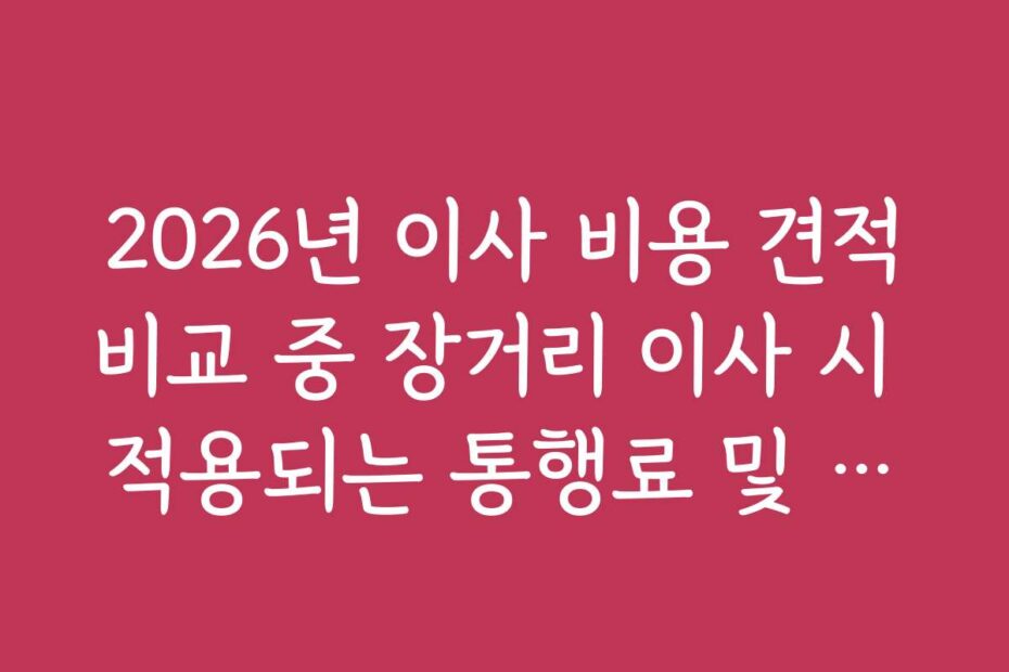 2026년 이사 비용 견적비교 중 장거리 이사 시 통행료 및 유류비의 중요성, 지금 알아두어야 할 모든 것 이사를 계획하면서 장거리 이동에 따른 비용 문제는 누구나 고민하게 마련입니다.