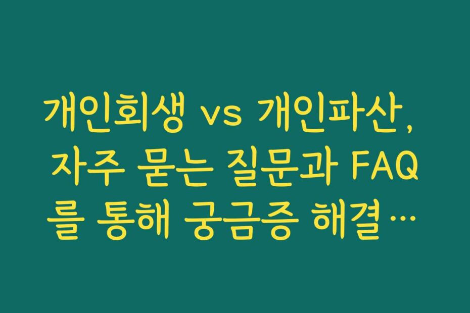 개인회생과 개인파산에 대한 혼란은 많은 분들이 겪는 어려움 중 하나죠. 특히 2026년 기준으로 각각의 선택이 어떤 의미를 가지는지 궁금하신 분들을 위해, 자주 묻는 질문과 FAQ를 통해 명확한 해답을 드리겠습니다.
