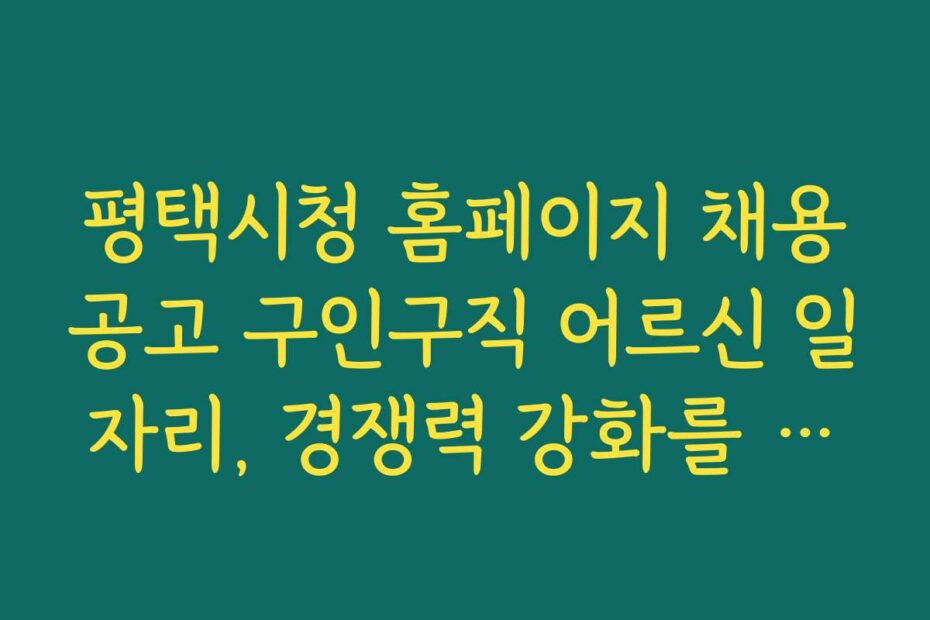 평택시청 홈페이지 채용공고 구인구직 어르신 일자리, 경쟁력 강화를 위한 교육 프로그램 안내와 관련하여 가장 자연스러운 질문형 또는 인사이트형 제목 요즘 평택시청에서 제공하는 어르신 일자리와 관련된 프로그램이 화제가 되고 있죠.