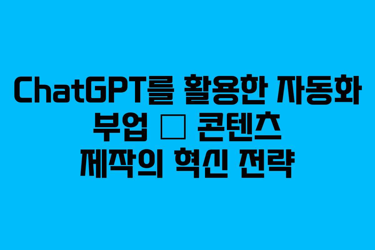 ChatGPT로 가능한 대표 부업 유형과 현재 상황
