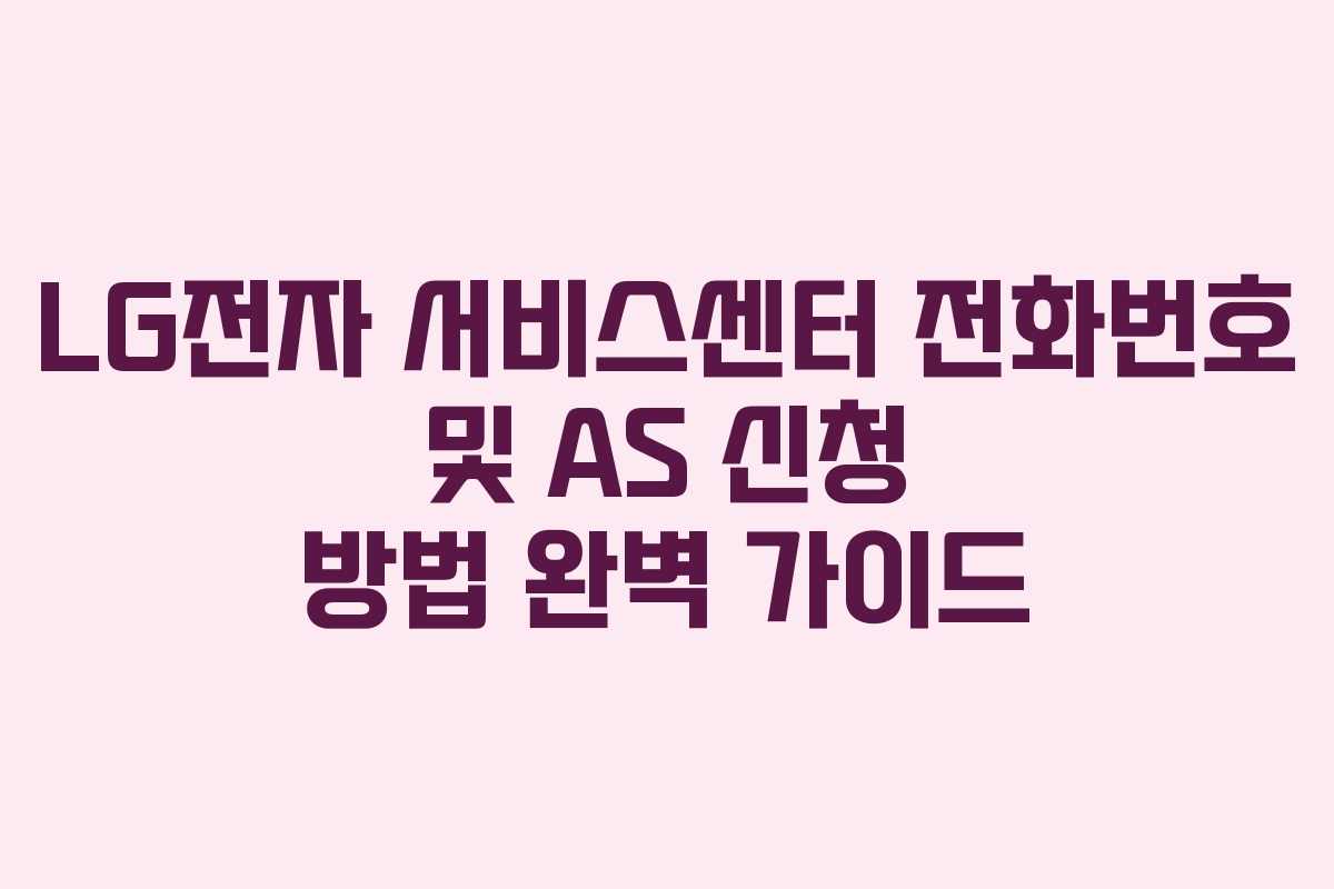 LG전자 서비스센터 전화번호 및 AS 신청 방법 완벽 가이드